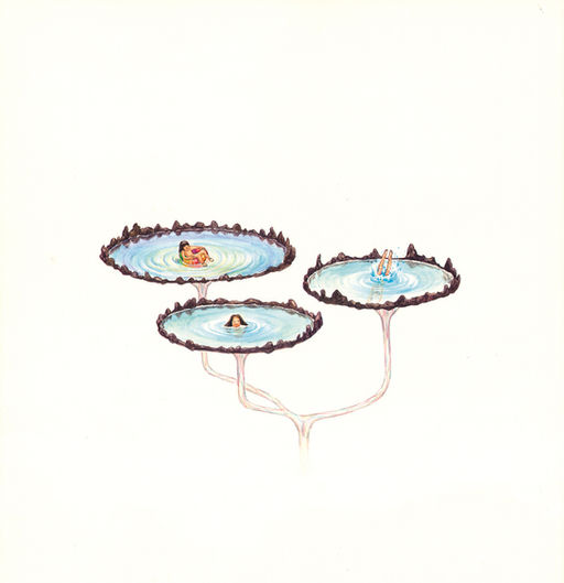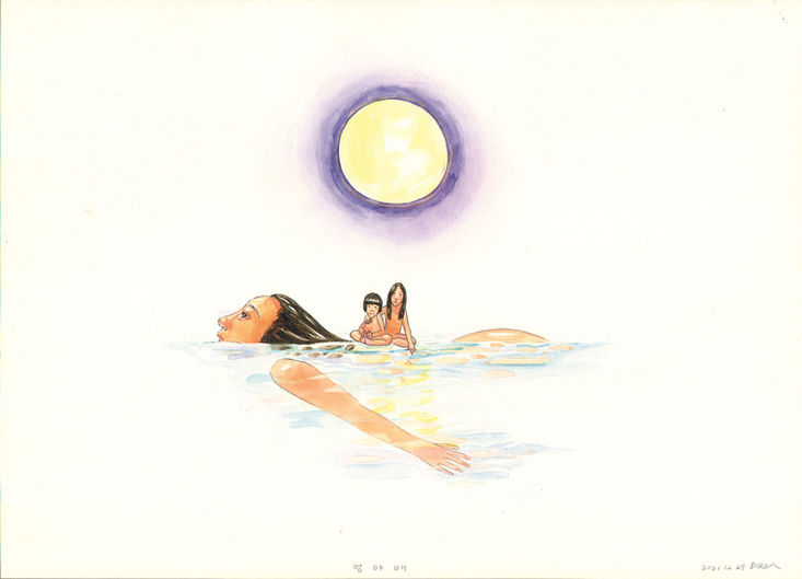 홍보람 작가는 <<시간을 느끼며 기다리기>> 전에서 두 아이를 키우고 있는 자신의 경험과 자연의 현상들을 관찰하여 얻어낸 공감의 지점들을 자연의 형태가 은유적으로 반영된 초현실적 수채화와 시와 같은 짧은 글로 표현한다. 일기 옆에 그렸던 작은 그림을 아이디어 스케치 삼아 매일 그림이라는 작가가 만든 일상의 영혼을 위한 의식으로 그려진 이 회화는 작가의 삶이 주변 환경과 교감한 순간들을 소소하고 사랑스럽게 전한다.