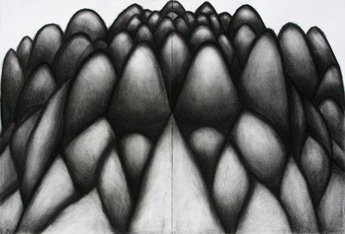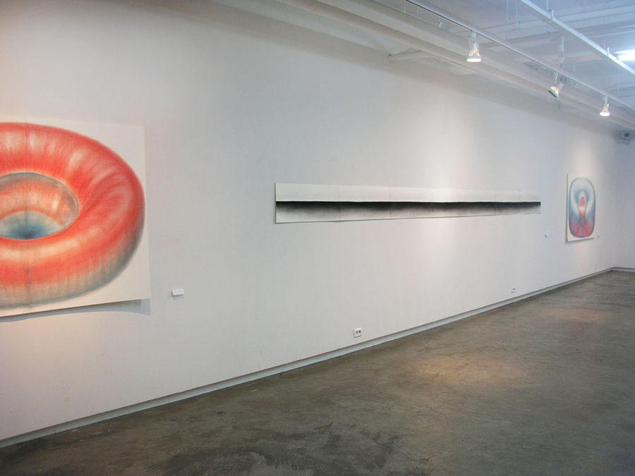 2009년 제주 이중섭 창작스튜디오 1기로 제주에 머물며 제작한 작업들로 개인전을 열었다. 제주에는 봉긋하게 솟은 오름과 쉼 없이 일렁이는 바다, 오려 붙인 듯 솟아오른 절벽과 공룡의 피부 같은 화산암, 뜨거운 채 굳어진 돌들과 땅의 깊은 곳에 간직된 동굴들, 수시로 바뀌는 날씨와 하루도 같은 적이 없는 지척의 섬들이 내게 가까이 있다. 이런 존재들은 내 머릿속에 떠돌던 따로 따로의 생각을 이해하도록 돕는다. 예를 들어 어떻게 하나가 다른 하나와 만나 작용하는지(용암과 물의 만남으로 땅의 모양이 만들어 진 것처럼), 서로가 어떻게 서로를 내포하는지 (물과 뭍의 관계처럼), 서로가 어떻게 서로의 형태에 영향을 미치는지 (파도에 씻기는 돌의 모양과 돌에 의해 생기는 파도) 등, 이 생각의 과정을 통해 나를 둘러싼 세계에 대해 조금씩 이해해가고 있는 것 같다.